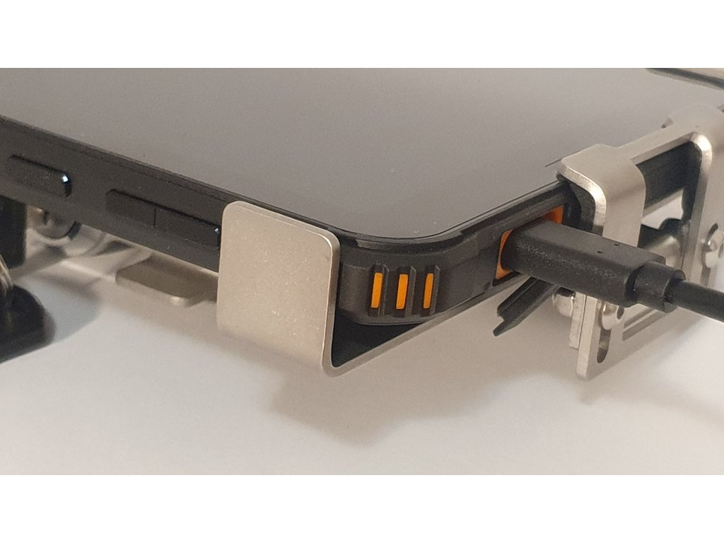 It is adjustable also for thickness. Side backrest are out of buttons. Charging plug is accesible. There are side fingers in two pairs for maximum tablet stability. It was optimized for Oukitel RT3 Pro.